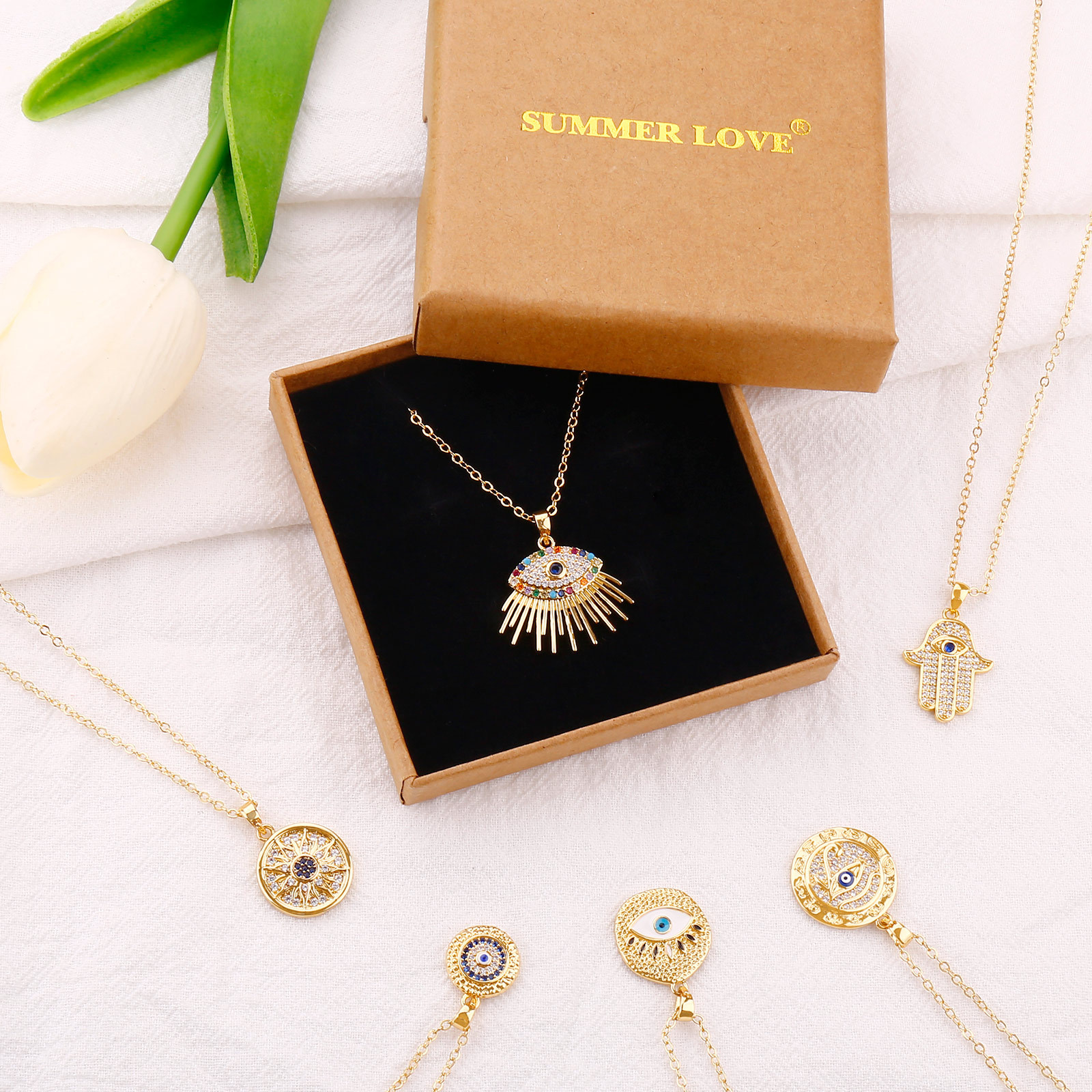 クロスボーダー英倫文芸復古風銅メッキ真金シリーズ目ペンダントネックレス女性シンプル軽豪華鎖骨鎖