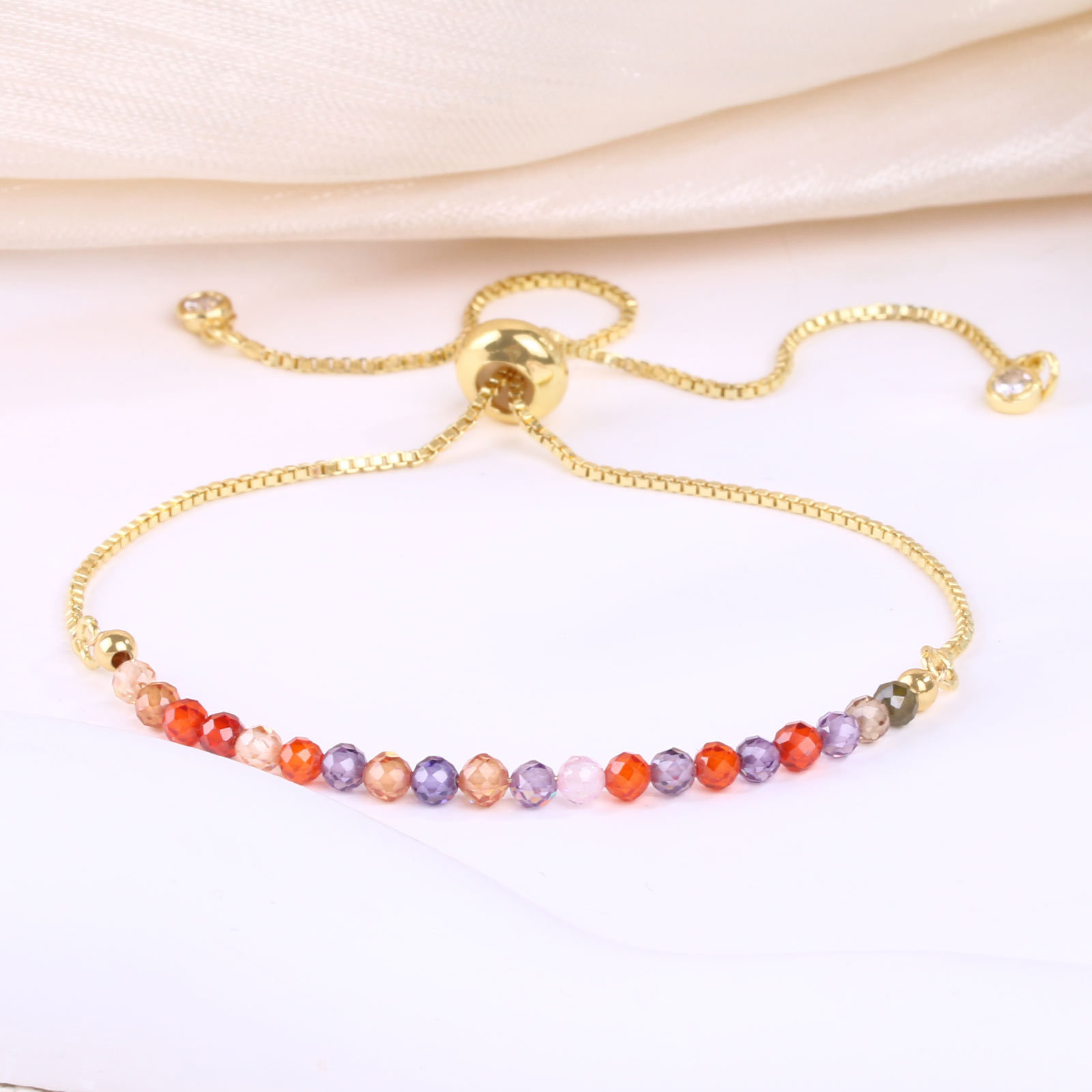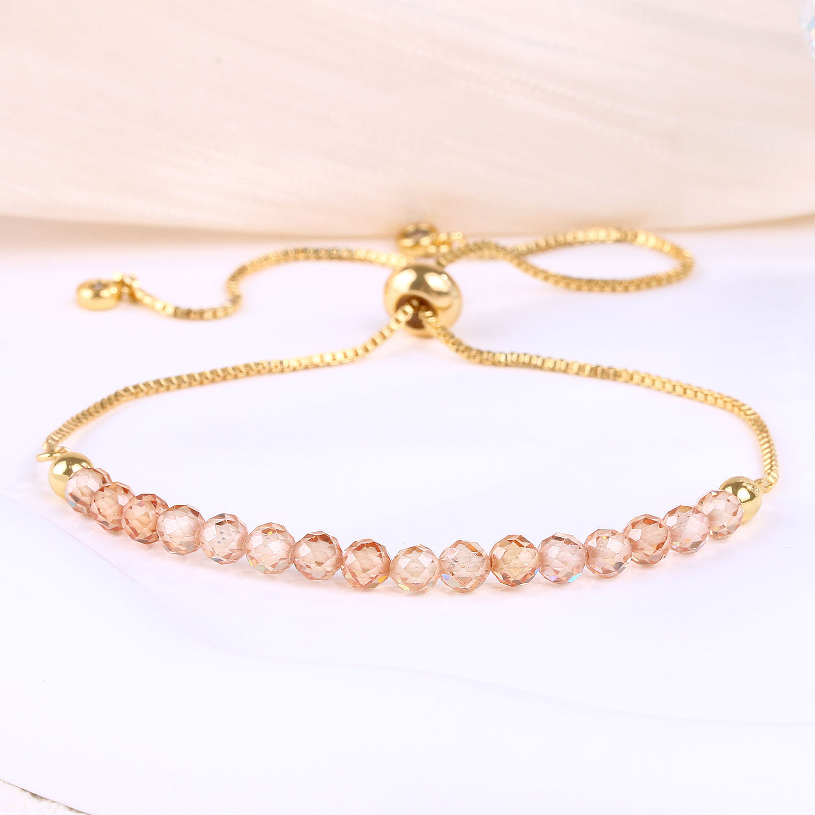 アマゾン热い贩売3mmカラーカットラウンドビーズジルコンビーズ百合ブレスレット铜メッキ真 � � ゴールド调整可能なブレスレット