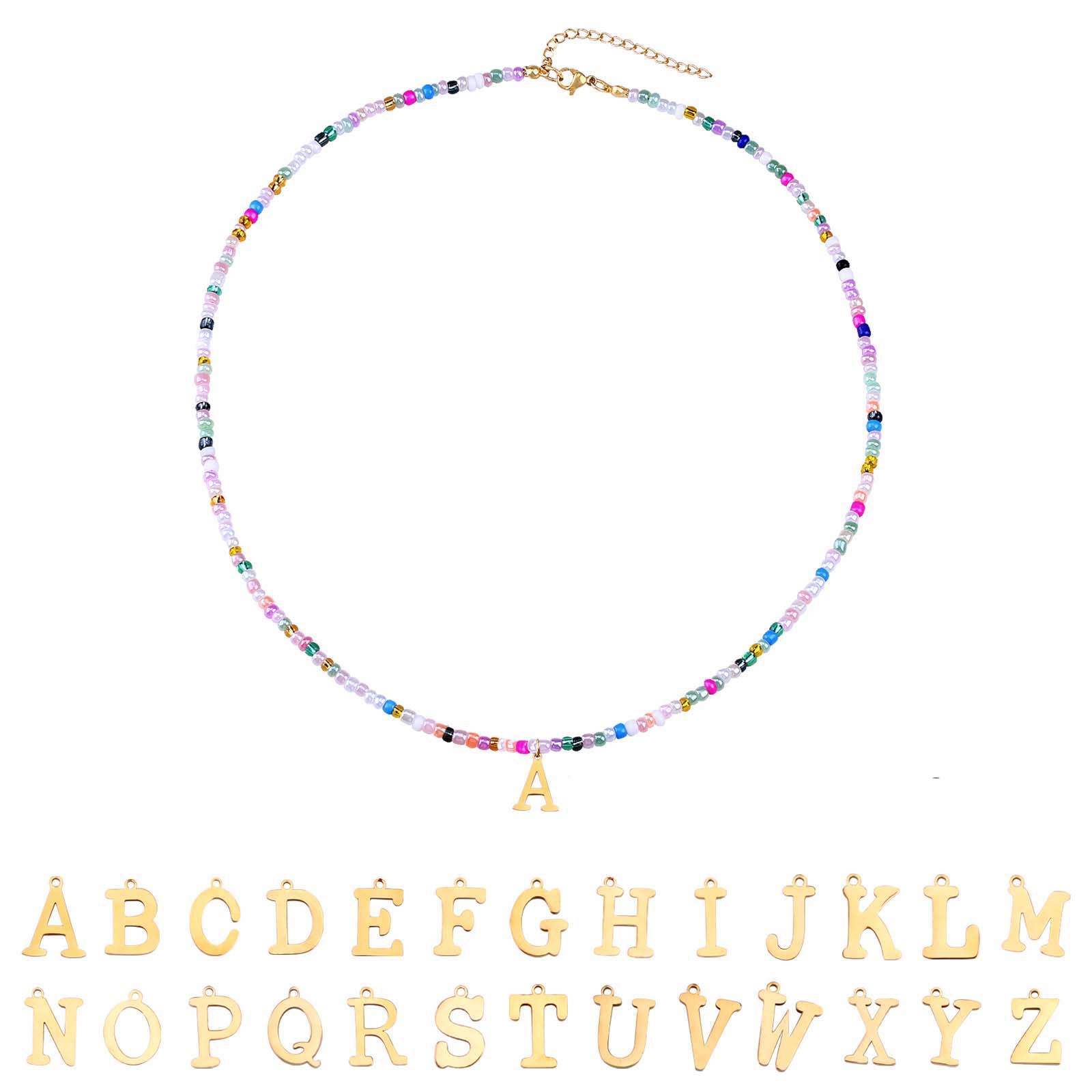 アマゾン爆型ステンレス鎖ボヘミアンカラー米珠金色26文字ペンダントネックレス卸売り