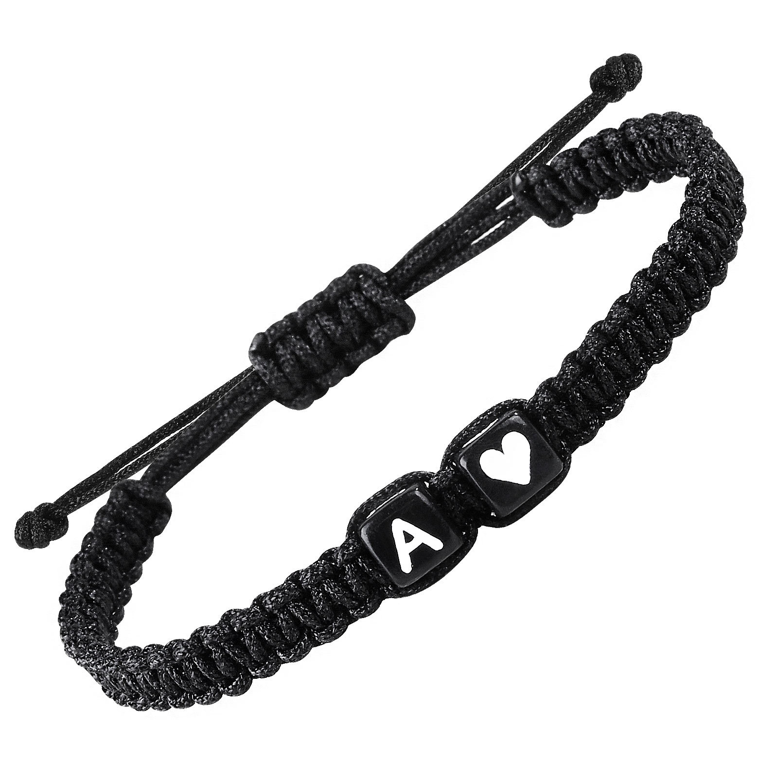 アマゾンの人気26文字夜光愛ブレスレット姉妹友情黒縄カップルの苗字編み手縄ブレスレット