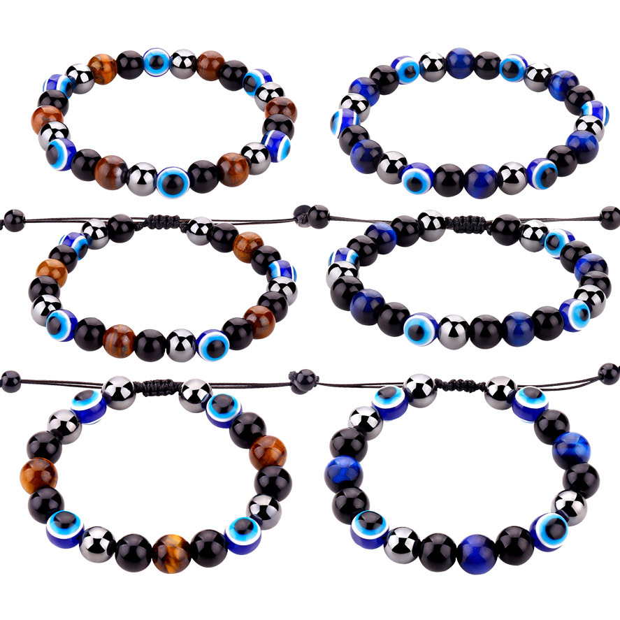 邪悪の目虎眼石弾力ブレスレット黒曜石青い目編みブレスレットアマゾンソース工場卸売り