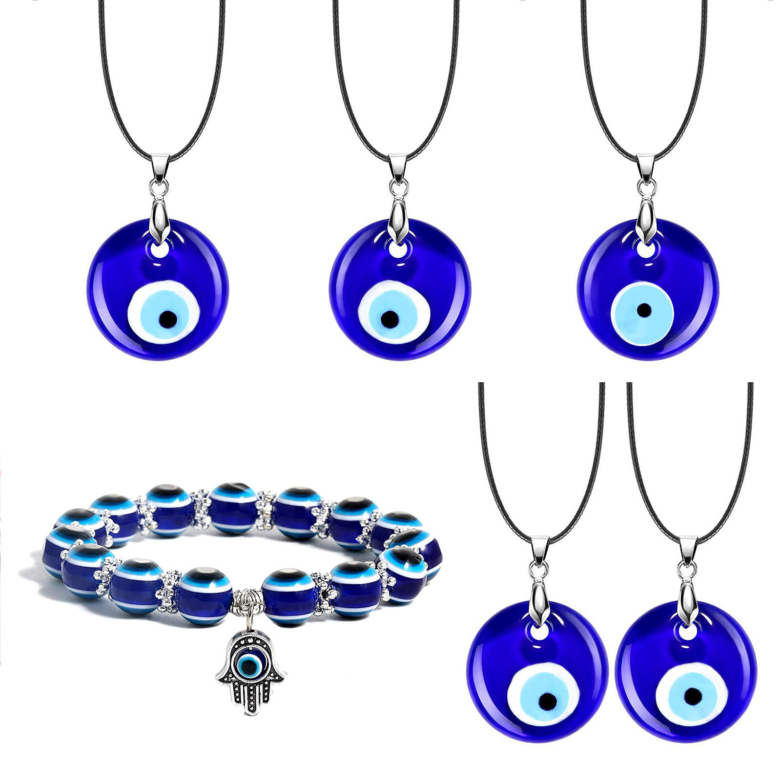 アマゾンの新型カラー瑠璃悪魔の目のブレスレットセットは欧米の黒胆石のクリップの数珠のブレスレットを卸売りします。
