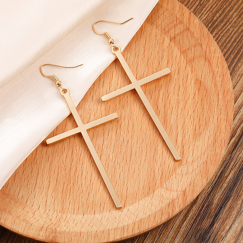 欧米のクロスボーダーの長い金の誇張するイヤリングの合金のクロスのペンダントの耳の装飾品の気質の高級感の卸売り