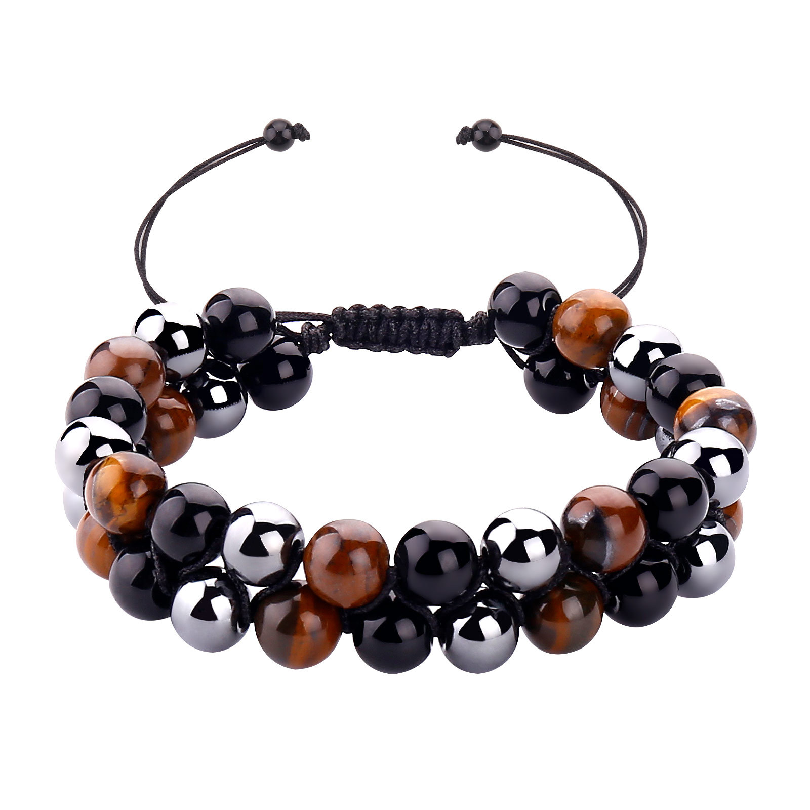 外国貿易の人気が8mm虎眼黒曜石赤鉄鉱天然石ビーズブレスレットの引き出しは調節可能なブレスレットを編むことができます。