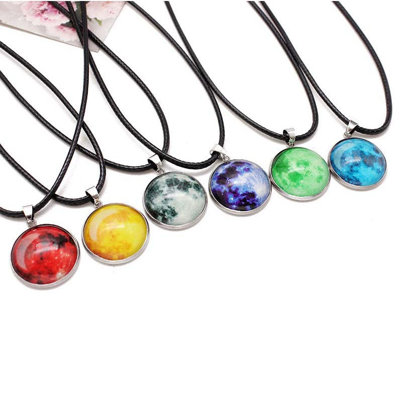 速売通爆金復古銀河宇宙夢幻星空ガラスステンレス夜光革紐ネックレスn0609