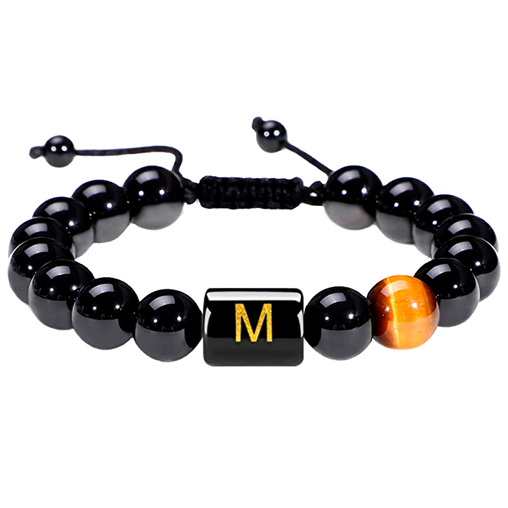 欧米風光沢のある黒丸玉模造瑪瑙26文字ブレスレット、クロスボーダー人気ファッションビーズ、男女カップル向けブレスレット