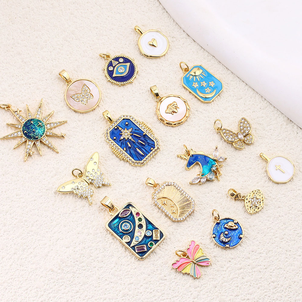 国境を越えたヨーロッパとアメリカの売れ筋銅金メッキマイクロダイヤモンドスタームーンバタフライユニコーンペンダントニッチデザインDIYアクセサリー
