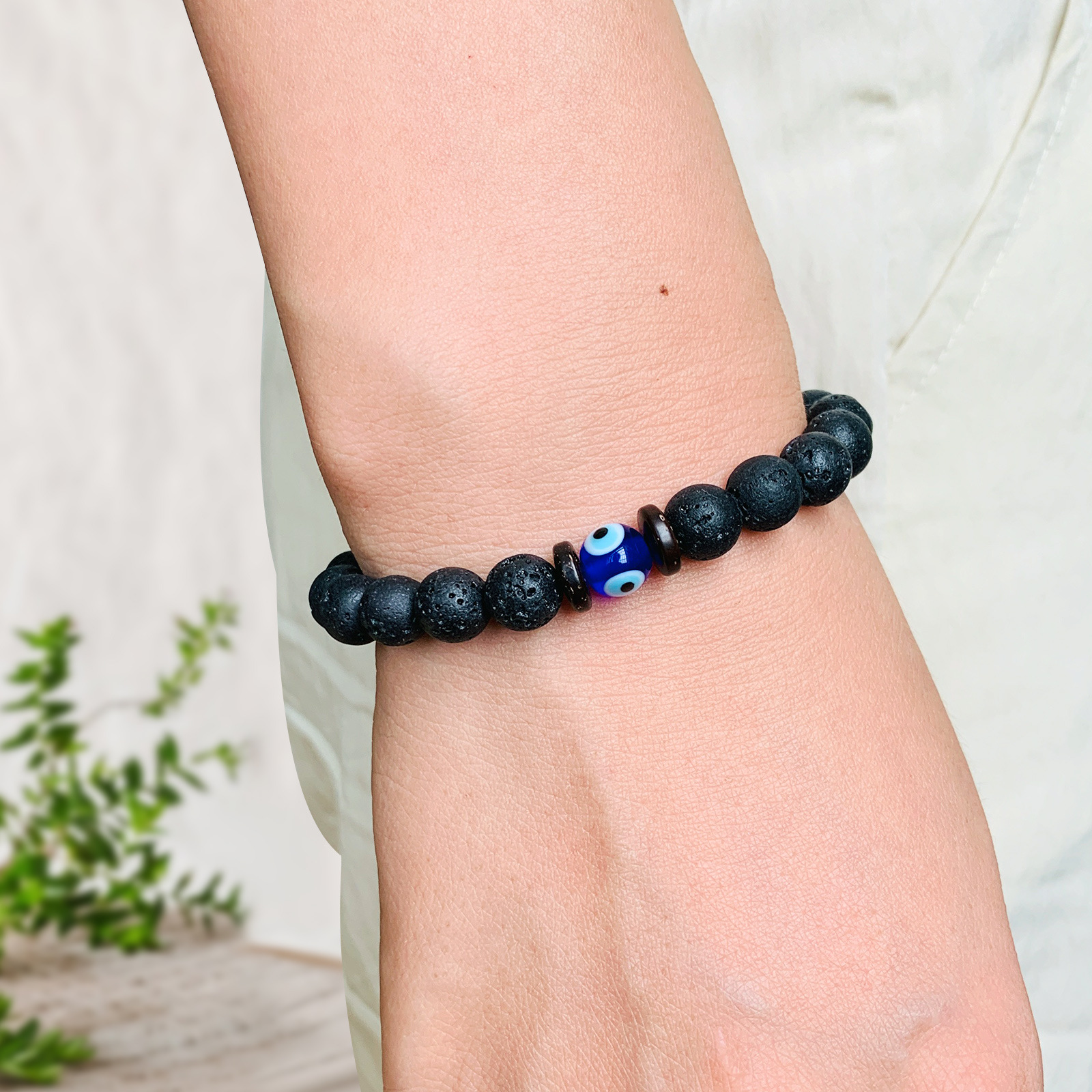 アマゾンは8mm火山石悪魔の目のビーズブレスレットを販売しています。