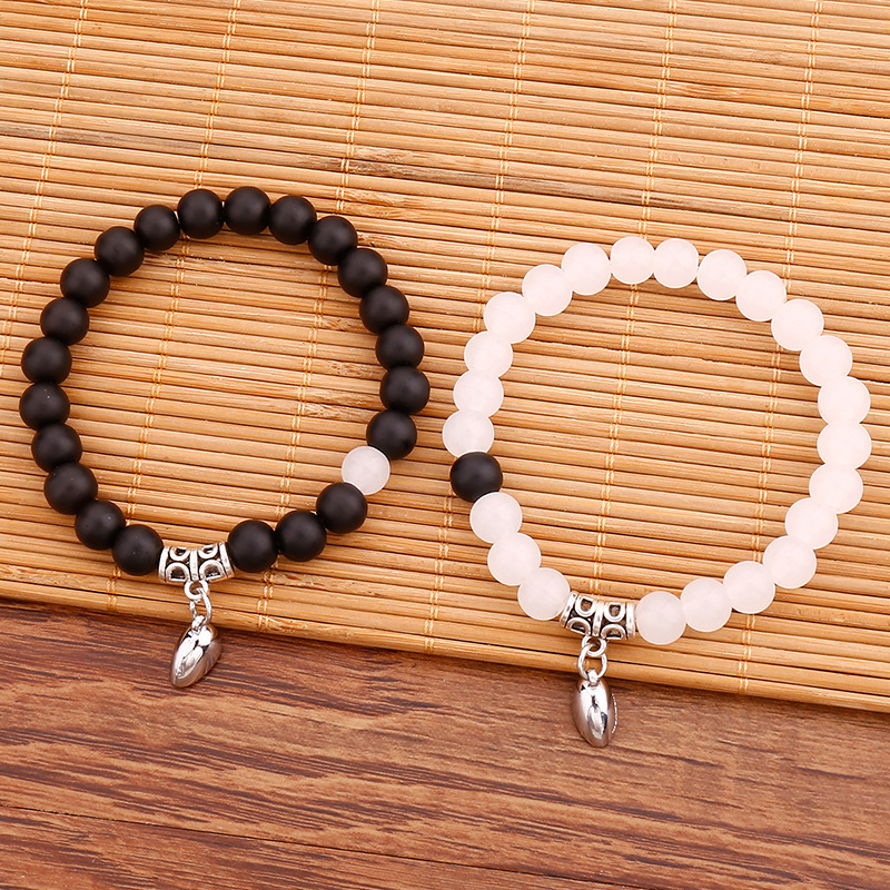 2025年欧米向け天然石ブレスレット Amazon人気商品 8mmハート型丸型磁石カップルブレスレット ペア