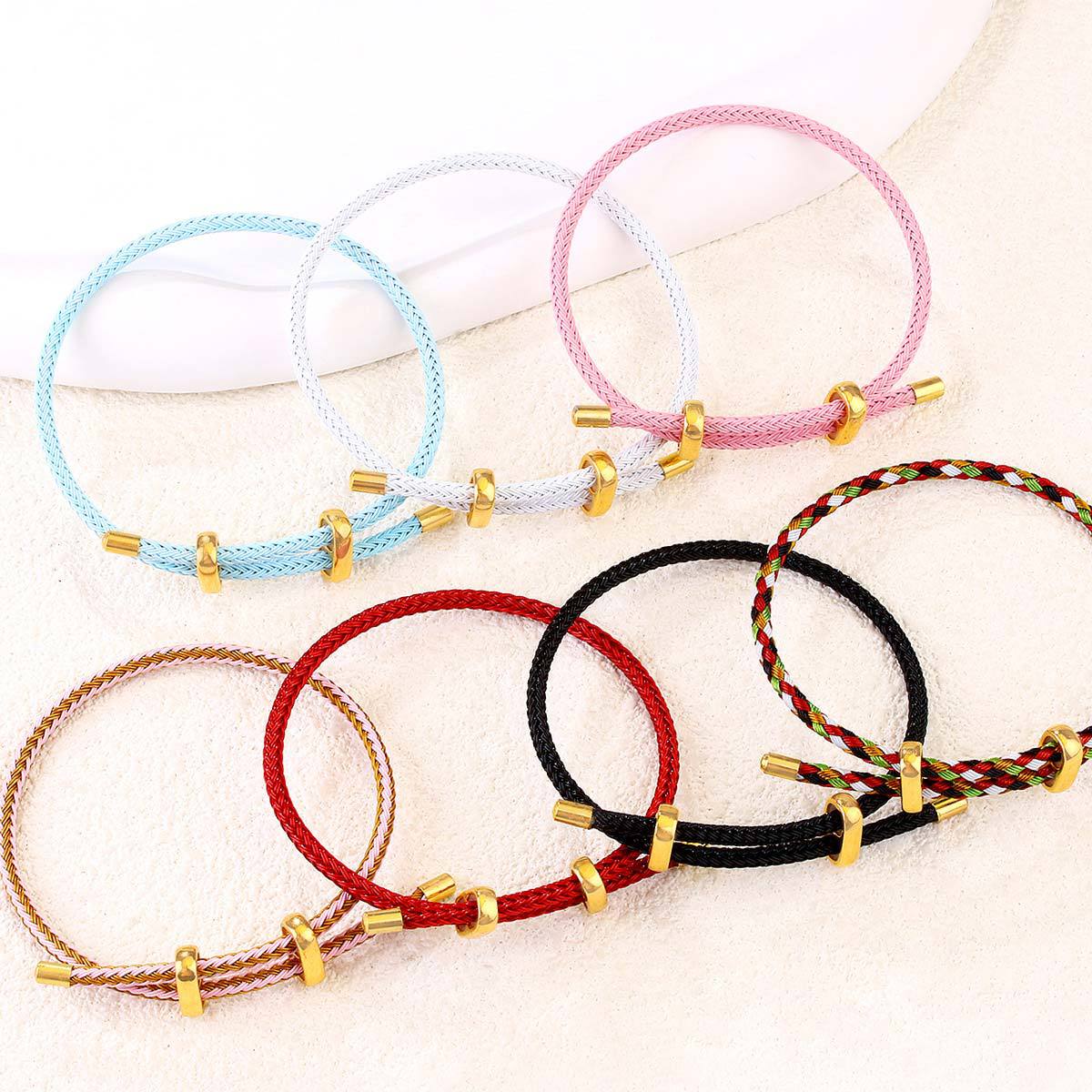 Amazonのベストセラー、スチールワイヤーロープのカップルブレスレット、赤と黒のクロスボーダー人気商品、8の字バックル付き調節可能なブレスレット、女性用DIYジュエリー
