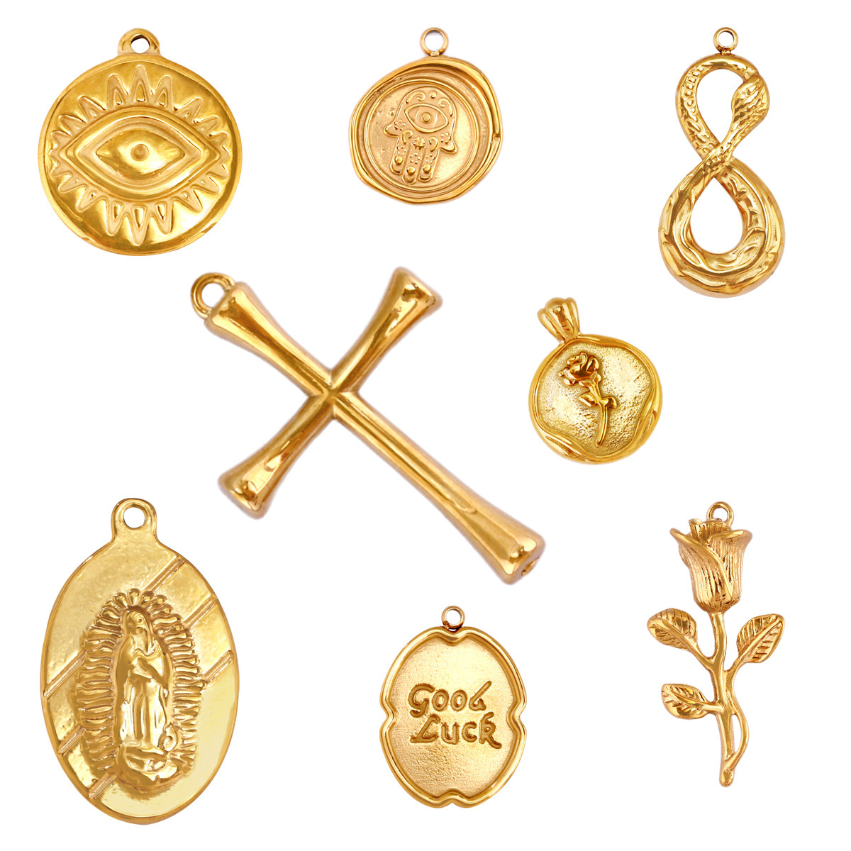 Diyアクセサリー部品ステンレスメッキ18k金シングルペンダントクロスボーダー热い贩売蛇ローズクロスネックレスペンダント