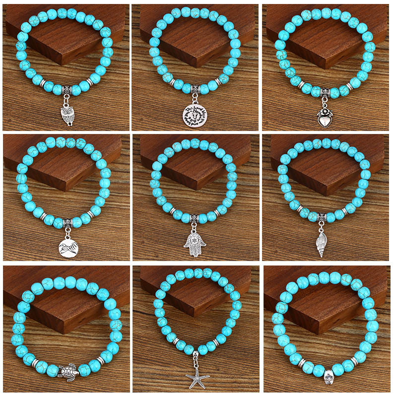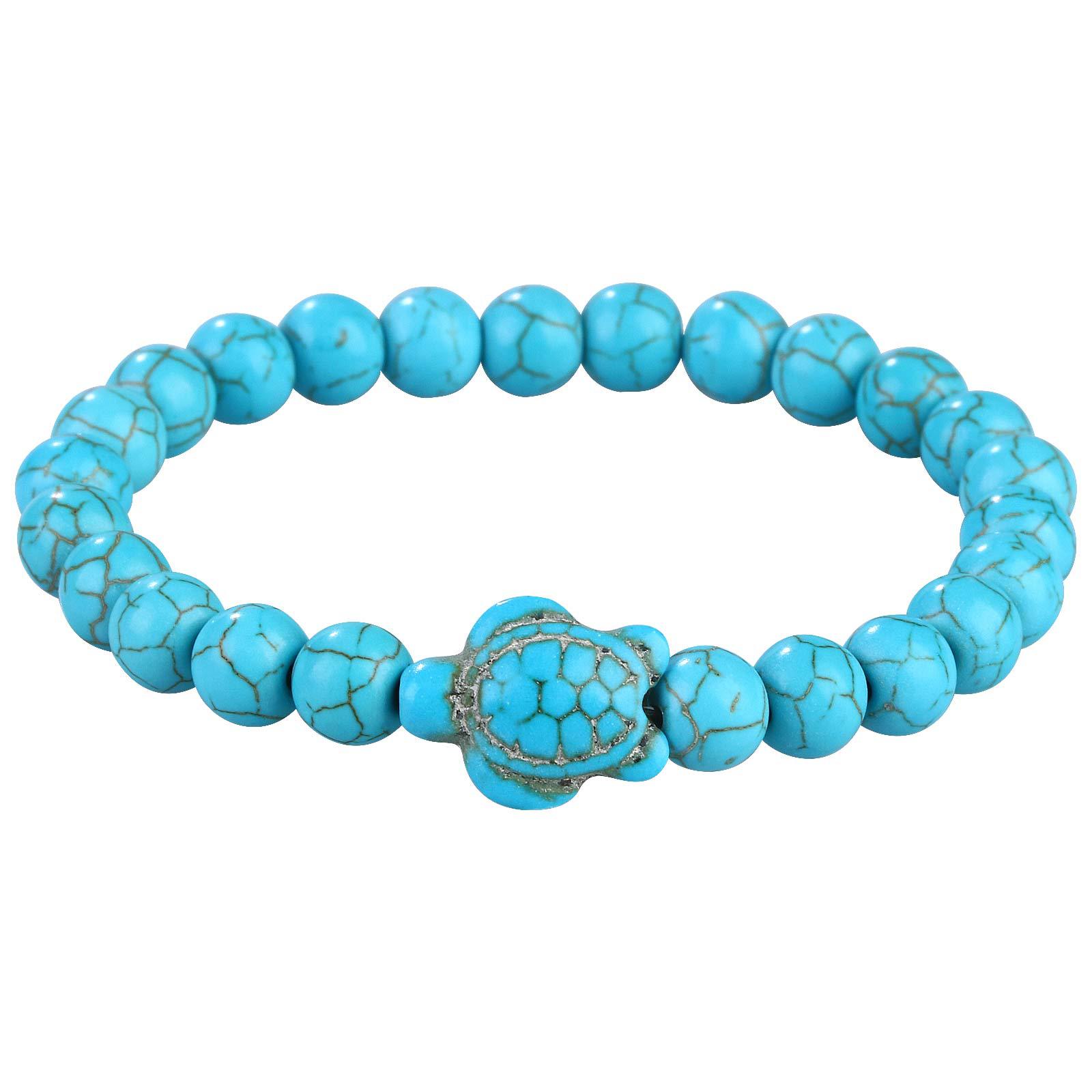 国境を越えた人気の天然石メンズブレスレット、タートルターコイズビーズ、伸縮性のあるブレスレット、カップル用の小さなアクセサリー、女性用