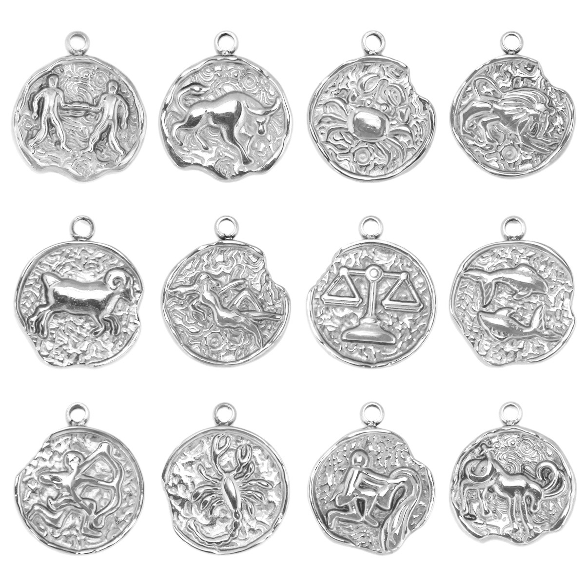diy ジュエリーアクセサリースチールカラーステンレス鋼シングルペンダント 12 星座ネックレスブレスレットペンダントレトロアクセサリーカップルペンダント