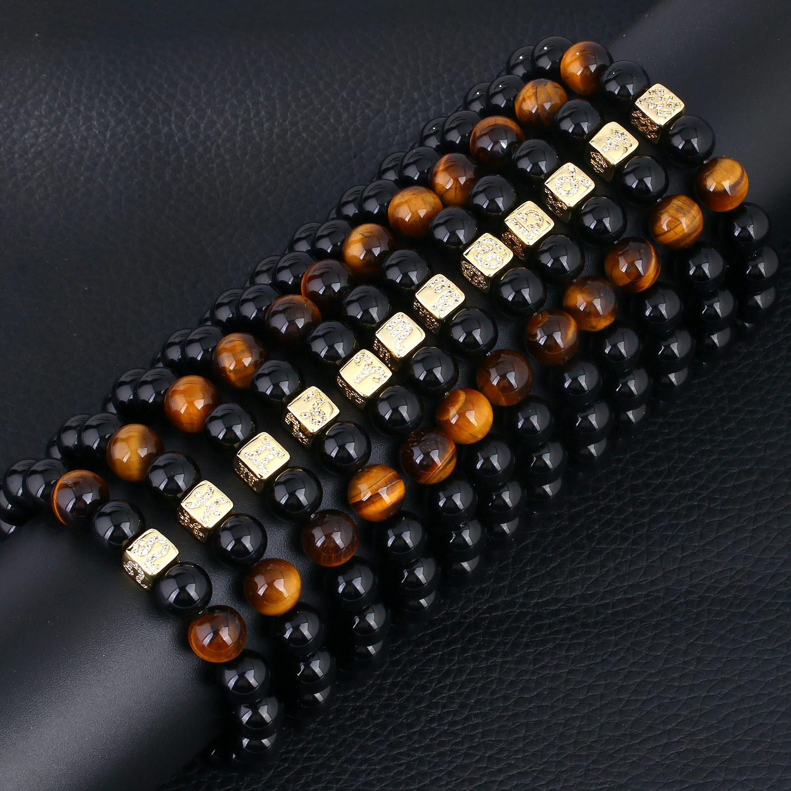 クロスミラー人気の天然石ビーズメンズブレスレットヨーロッパとアメリカの売れ筋黒胆石クロスカップルブレスレット女性用