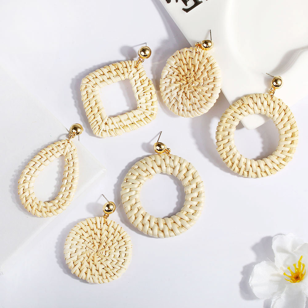 ヨーロッパとアメリカのクロスボーダーリゾートスタイルの籐イヤリング誇張イヤリング Xiyin ニッチラージフープイヤリング女性のボヘミアンジュエリー
