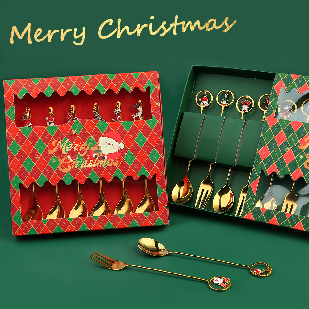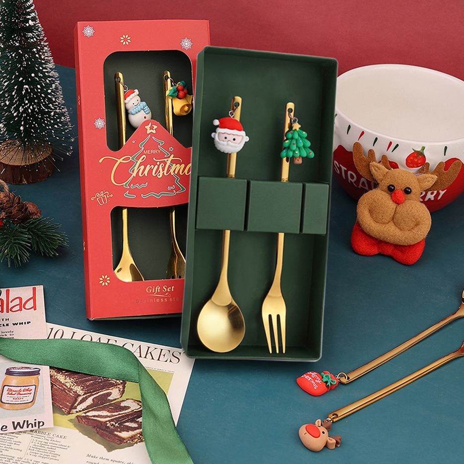 Aクロスボーダーペンダントクリスマススプーンフォークセットコーヒースプーンフルーツフォークins风クリスマスプレゼントステンレススプーン