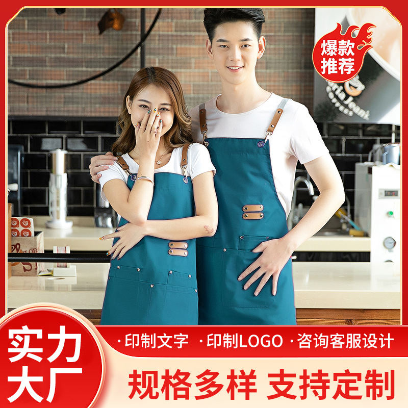 キャンバス防水エプロン卸売り喫茶店キッチン家庭用高颜値作業服エプロン代発印字ロゴ