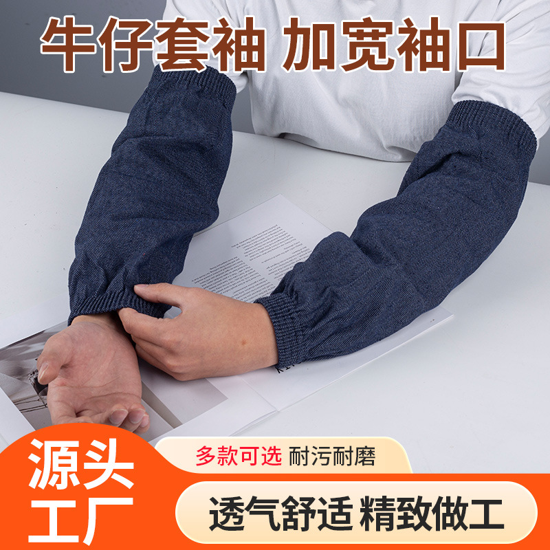 メーカー現物家庭用キッチンブルー通気性油汚れ防止工業スリーブデニム綿布労働保護スリーブ卸売り