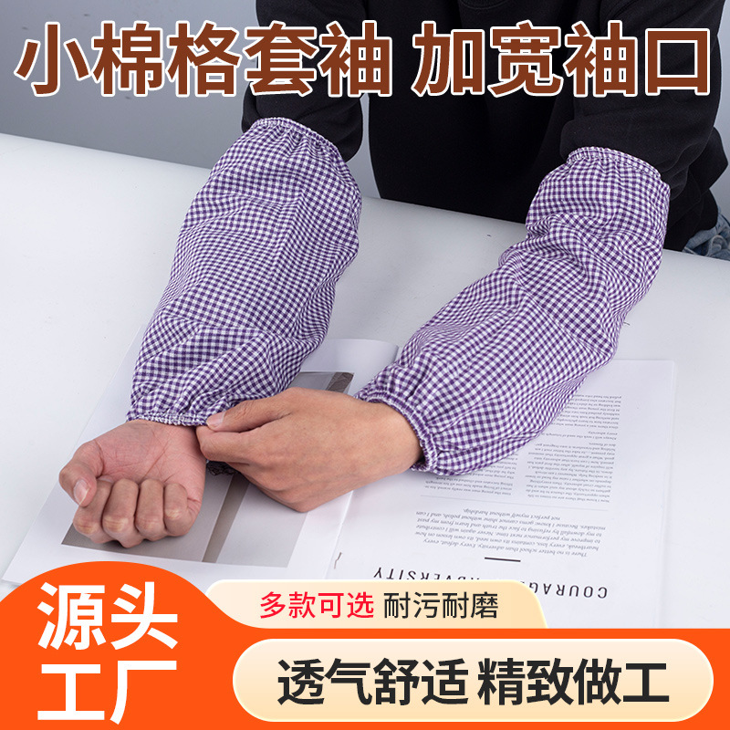 綿チェック柄スリーブ、綿スリーブ、労働保護、家庭用日焼け止め、防汚弾性スリーブ、家事用防塵スリーブ