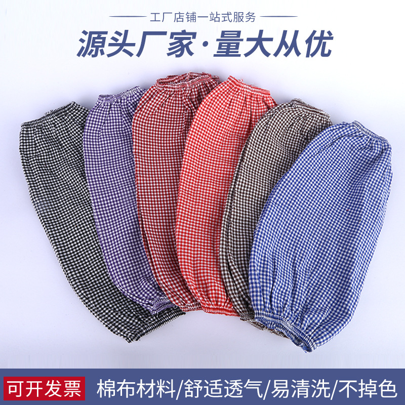 家庭用清潔作業純綿布防汚防塵増厚労働保護カバー袖彩格子綿袖カバーメーカー卸売り