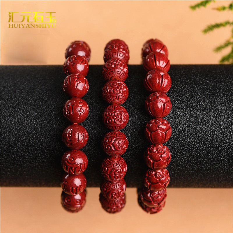原鉱の朱砂の六字の真言の玉のブレスレットの女性の金の高い含有量の紫金の砂の蓮の花の祥雲の手の串の生放送の商品の供給源