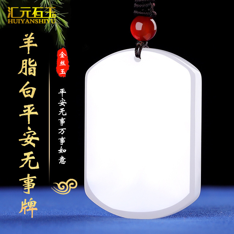 天然新疆羊脂白玉金糸玉平安ブランドのペンダント