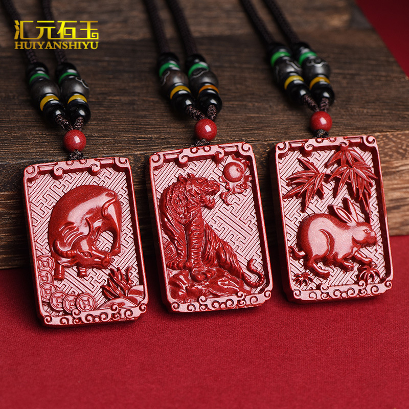 天然朱砂ペンダント紫金砂十二生肖本命年守護神両面彫刻ストラップ直播ソース