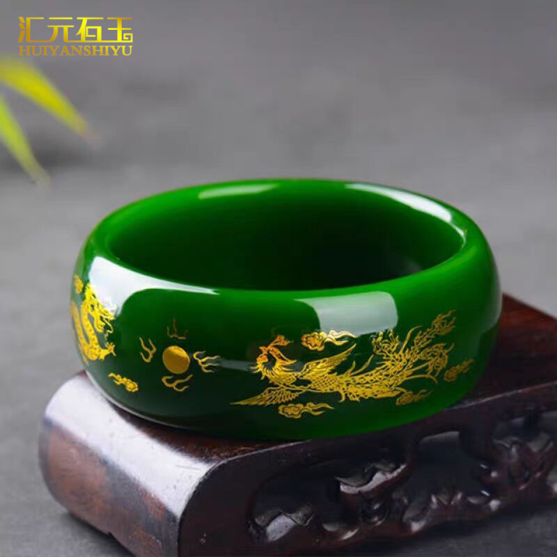新疆高模碧玉描金ブレスレットホウレンソウ緑龍鳳呈祥白玉女心経百福図玉ブレスレット