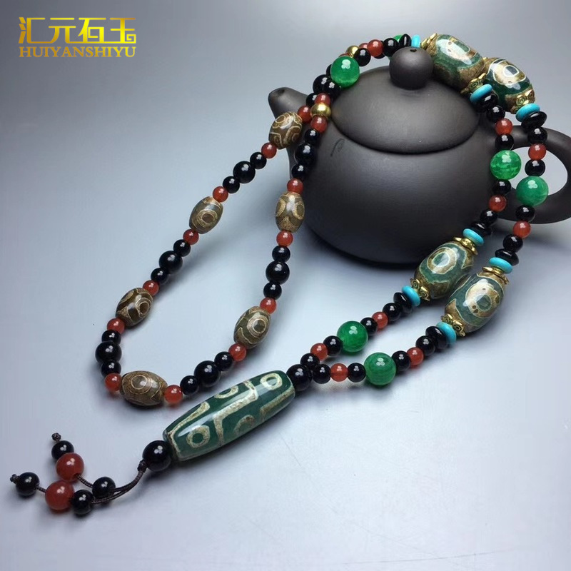 チベット瑪瑙天珠ネックレスコーヒー色緑九眼天珠ネックレスファッション編み生放送ソース卸売り