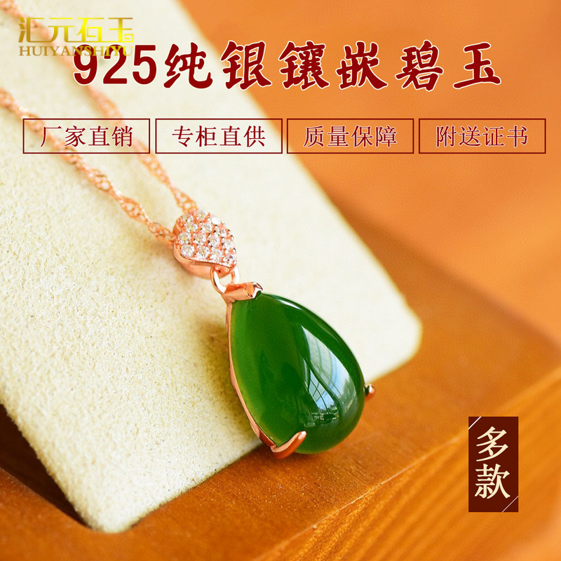 925銀モザイク和田玉碧玉水滴金魚鹿頭銭袋玉ストラップ鎖骨鎖ペンダント直播金金