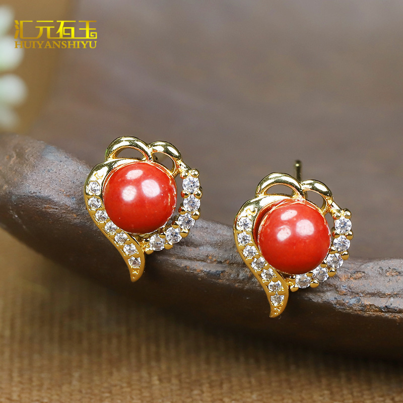 高含有量帝王砂ピアス本命年朱砂はめ込みイヤリング銅メッキ銀生中継ソース卸売り