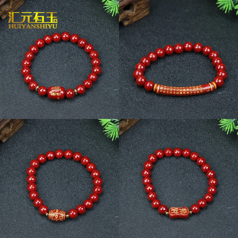 朱砂描金天珠ブレスレット粒子結晶砂箔押し金仏珠手串本命年紅砂アクセサリー直播ソース