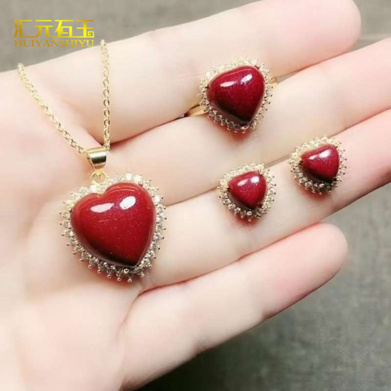 朱砂三点セット紫金砂愛祥雲指輪ピアスペンダントバラ花モザイクセット生放送ソース
