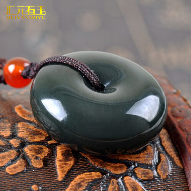 藍田玉墨玉如意ペンダントオリーブ緑隕石祁連山墨緑玉透かし玉玉器ペンダント卸売り