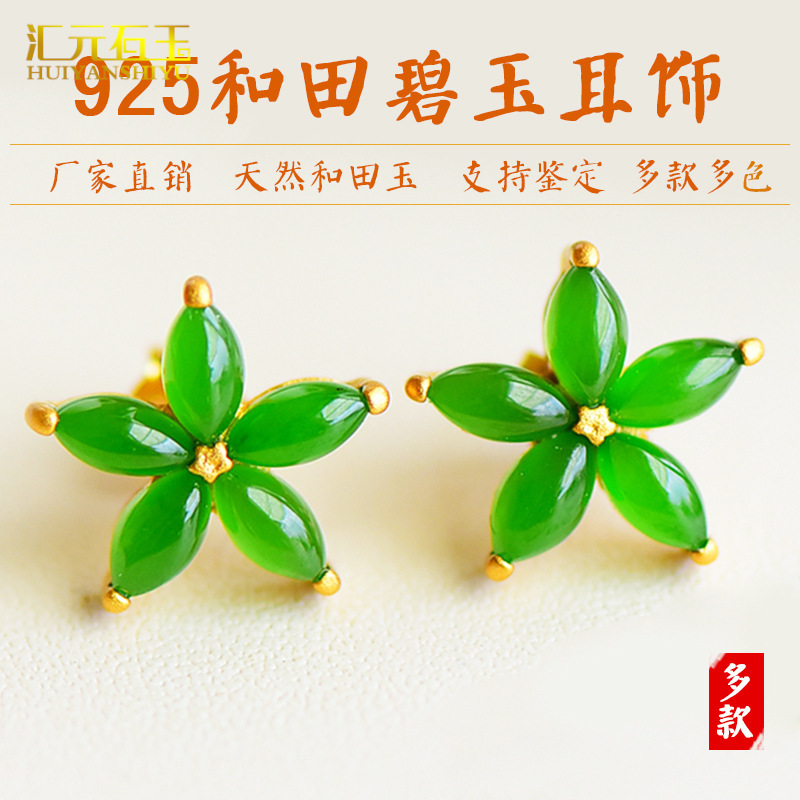 天然ロシアと田玉碧玉イヤリングホウレンソウ緑925銀金メッキピアス中継ソース