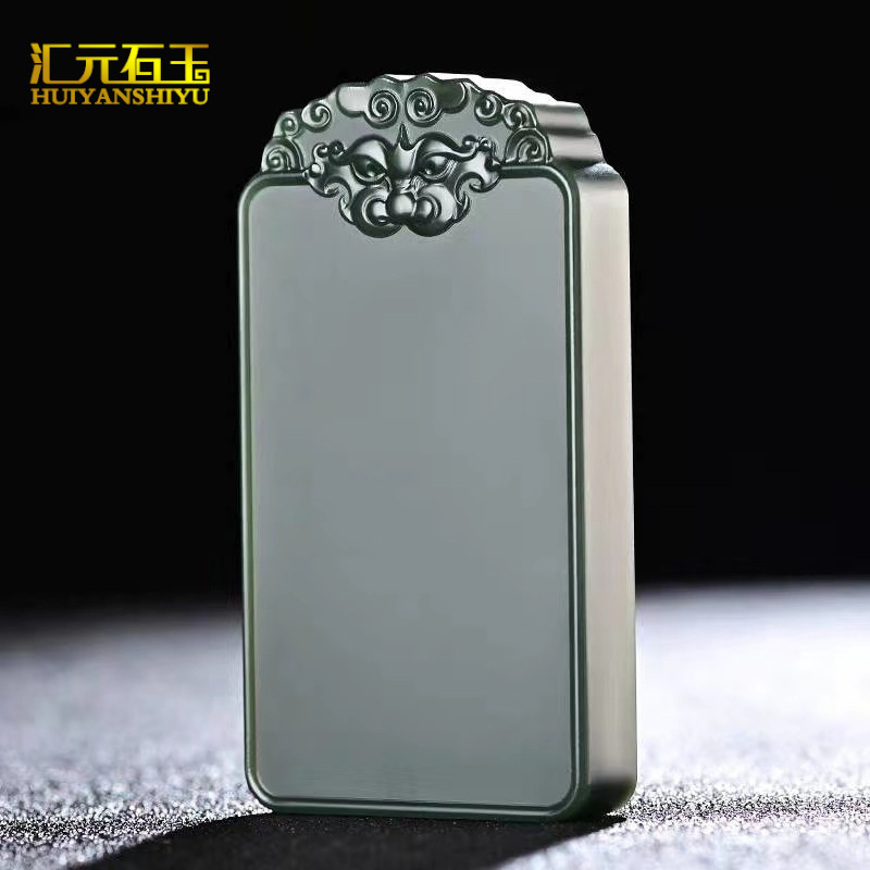 新疆和田玉 青玉 上質両面平安牌 無事牌 ペンダント タイチン翡翠 貴重な牌 ペンダント 翡翠牌
