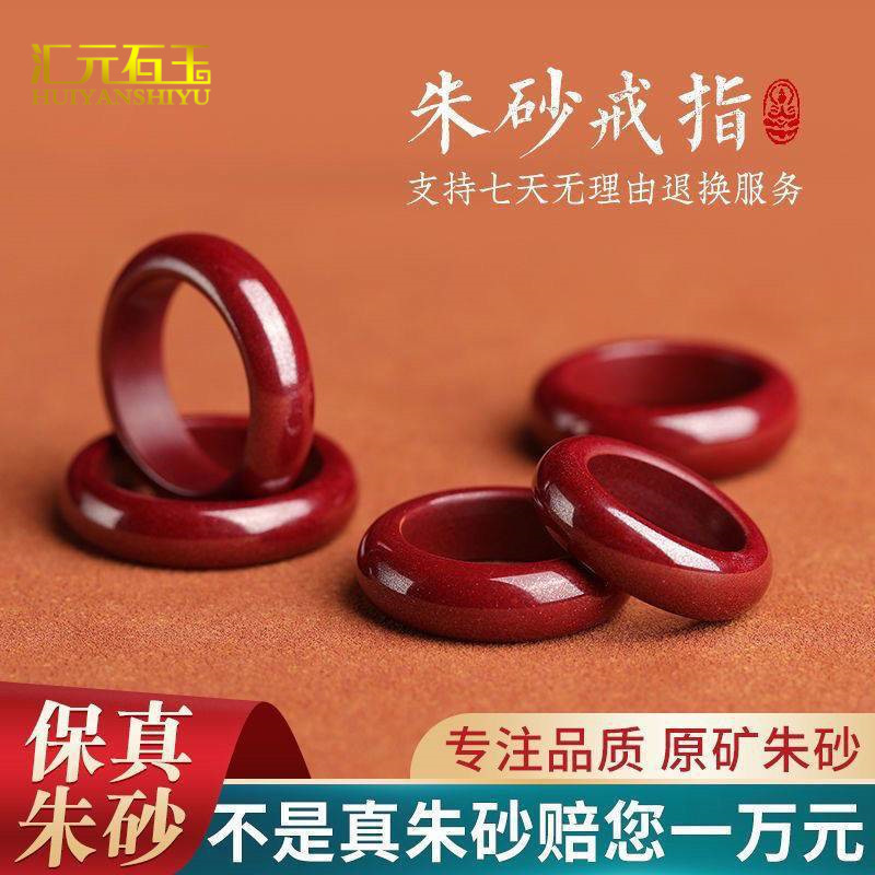 天然原鉱朱砂指輪紫金砂素輪男女本命年赤色指輪リング中継ソース卸売り
