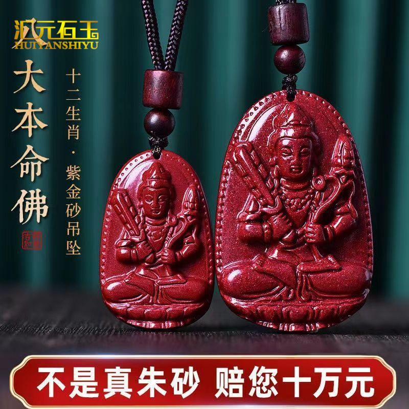 原鉱朱砂紫金砂ペンダント帝王砂十二生肖本命年守護神ペンダント直播ソース卸売り