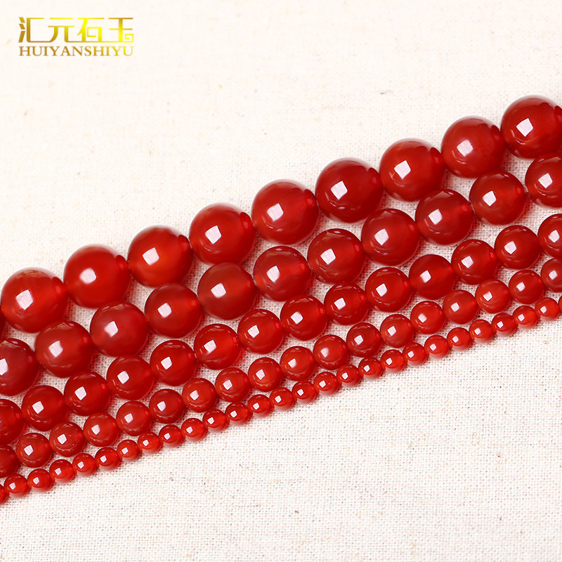 赤瑪瑙ルースビーズブレスレットジュエリーアクセサリーロングストリップカルセドニー穴あき丸玉DIYアクセサリー生放送卸売