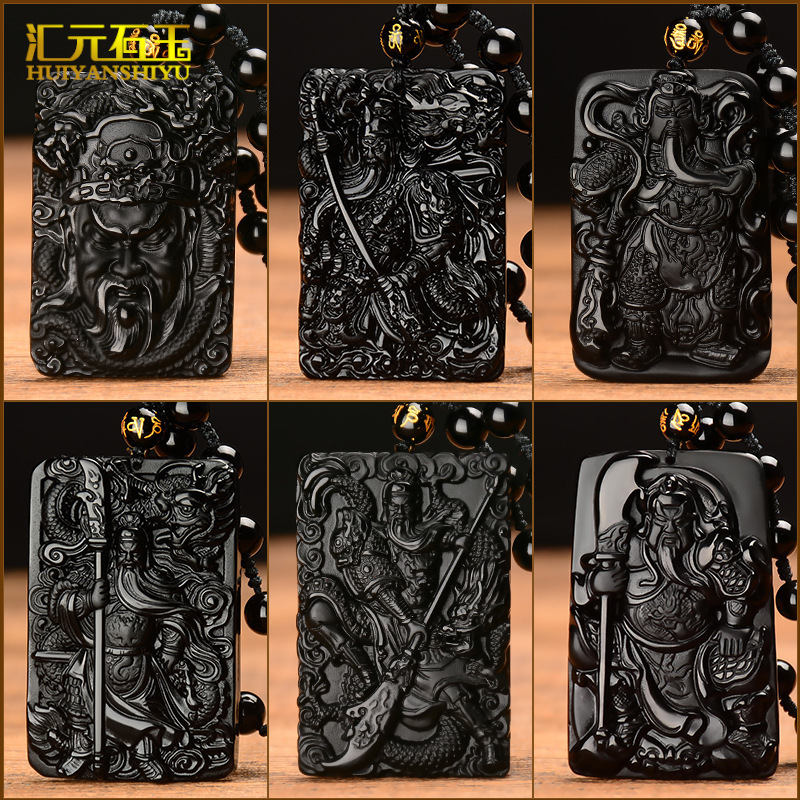 ブラジル黒曜石ペンダント覇気玉玉器関公玉ブランド関羽関二爺武ブランドネックレス