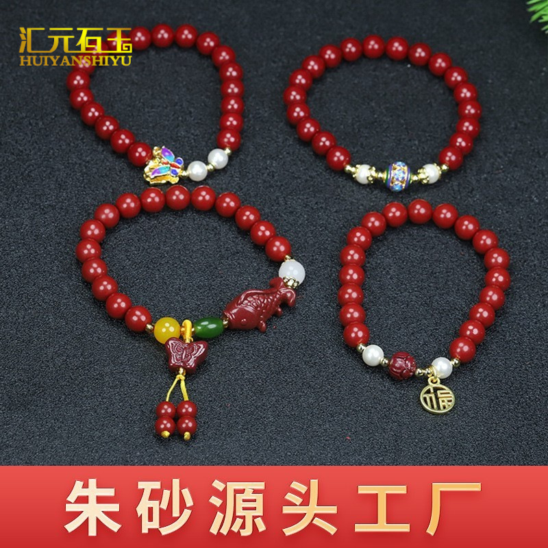 原鉱の雄黄朱砂のブレスレットの細い丸は腕輪の女性の腕輪の装飾品の贈り物の腕輪の生放送の商品の卸売りになります。