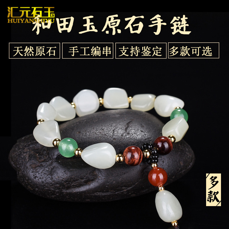 新疆和田羊脂白玉金糸玉玉玉ネックレスブレスレットセット玉器手串生中継ソース
