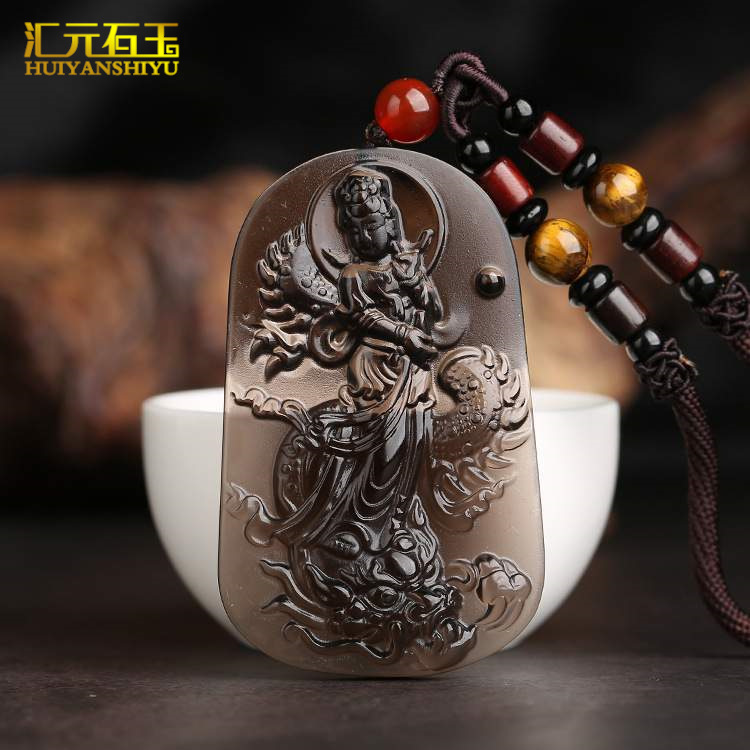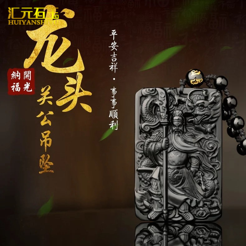 生中継ソース氷種黒曜石龍牌関公龍観音ペンダント