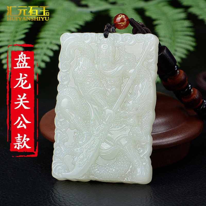 新疆和田玉白玉関公ペンダント男性金玉佩関二爺玉牌武両面彫刻ペンダント