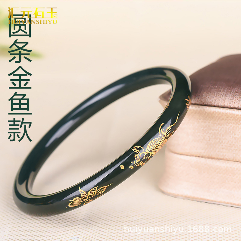 新疆と田玉の青玉は金の鳳凰の吉祥の腕輪の玉の器の丸い条の金の玉の腕輪の卸売りを描き出します。