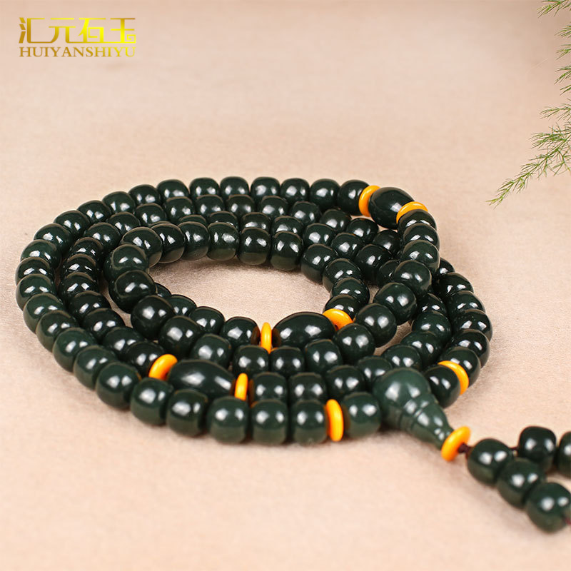 新疆と田玉の青玉の古い形の玉の108仏珠の多い輪のブレスレットの男女のリンゴの玉の手の串の生放送の金