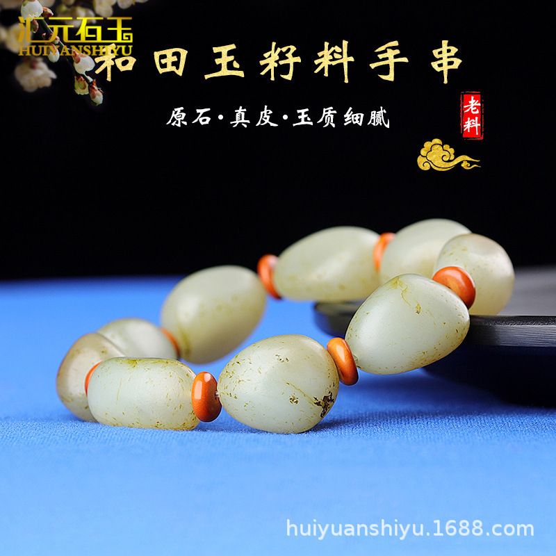 新疆和田玉種子材料原石ブレスレットナツメ赤皮小種黒皮玉器diy手串男女金