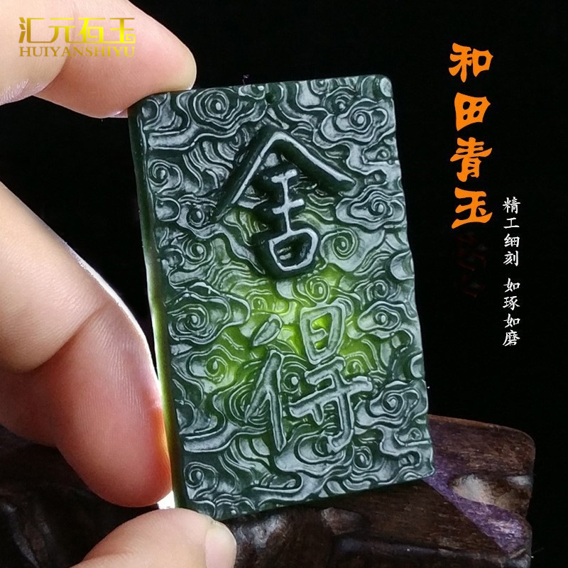 新疆和田青玉精雕头平安符无事牌ペンダント吉祥如意字玉牌ペンダント生放送