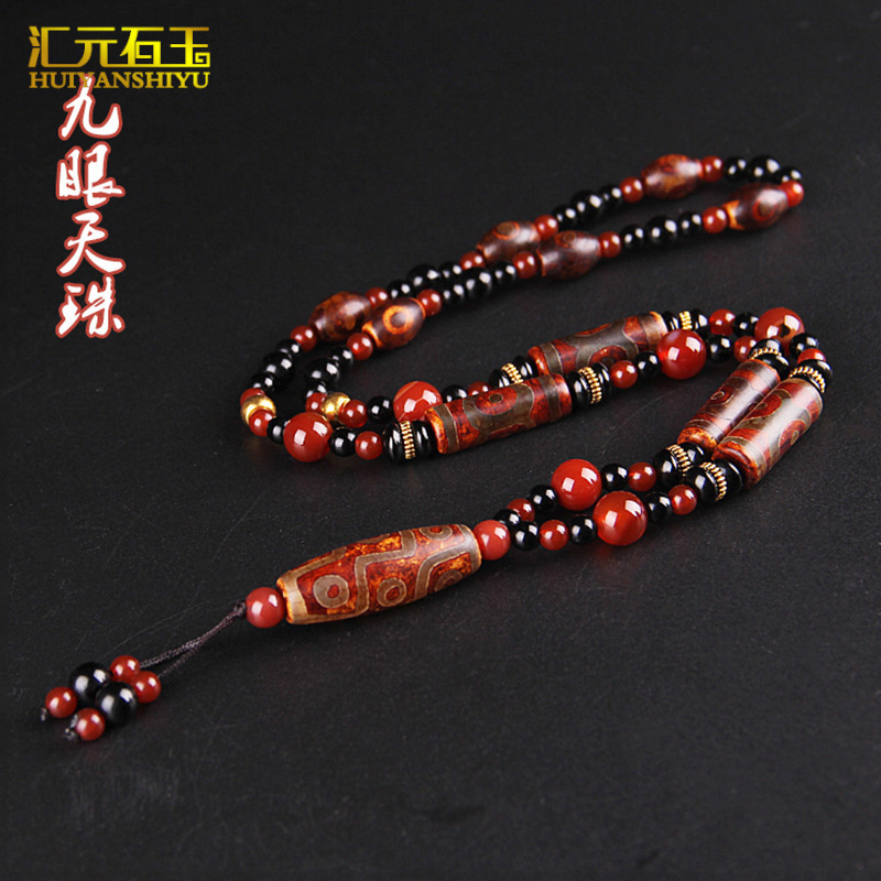 天然チベット瑪瑙九眼老天珠ネックレス創意的な男女モデルのセーターチェーンの生放送商品の卸売り