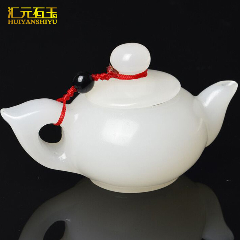 汗玉白玉ティーポットのハンドルは、胡米黄玉氷をシルク玉巴玉のハンドルに通します。